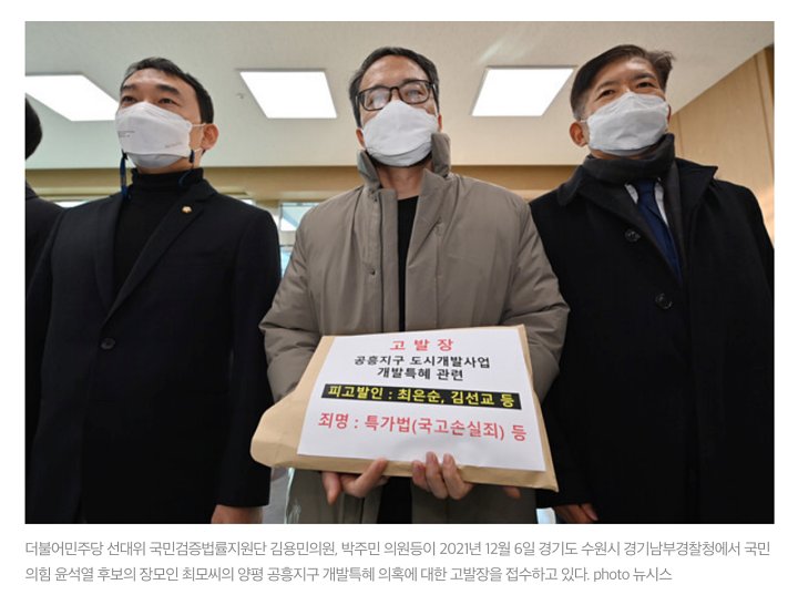 전날 경기남부경찰청 반부패·경제범죄수사대는 사문서위조 및 행사 혐의로 윤 대통령 처남 김아무개(53)씨 등 경기도 양평 공흥지구 개발사업 시행사 이에스아이앤디(ESI&D) 관계자 5명과 양평군 공무원 ㄱ씨 등 3명을 검찰에 송치한다고 밝혔다.